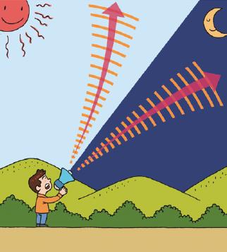 낮에는 공기 밀도가 반대가 되어서 지표면에서 높은 상공으로 굴절되어 지표면 근처에 있는 사람은 소리가 잘 전달되지 않습니다.