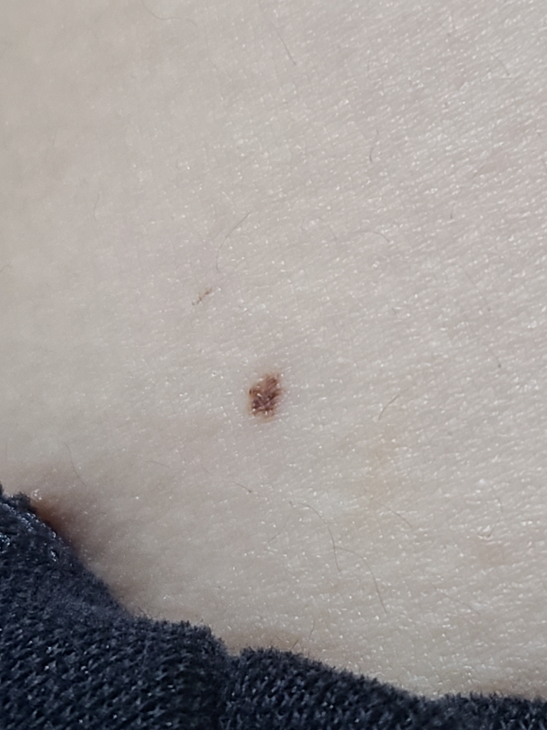 사진 한 장 놓고 흑색종이 맞다 아니다 판단할 수는 없습니다만, 사진의 소견을 통해서 미뤄 보았을 때에 점의 모양이 찌그러져 있거나 점의 경계가 불분명하지 않고, 점이 튀어나온 양상도 아니기 때문에 흑색종을 의심해볼 수 있는 소견들이 따로 있다고 볼 수 없습니다. 흑색종 피부암의 가능성은 낮아 보이며, 단순한 색소 침착, 즉, 점일 가능성이 가장 높아 보입니다. 그렇지만어디까지나 가능성을 보는 것일 뿐 앞서 언급하였듯 피부의 외관적인 소견만 가지고 완전하게 감별 및 배제할 수 없기 때문에 걱정되신다면 피부과에서 조직 검사를 받아보시는 것이 가장 안전한 방법입니다.