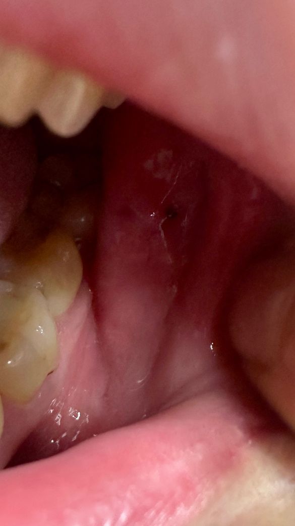 사진에 보이는건 볼살이 치아에 씹히면서 피가 고여 잇는 상태입니다. 그냥 터트리면됩니다.