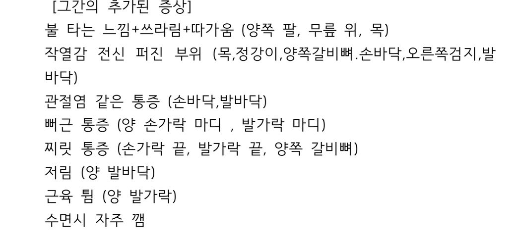 손,발바닥 작열감+전신 쓰라림 이면 어떤 질환일까요~?