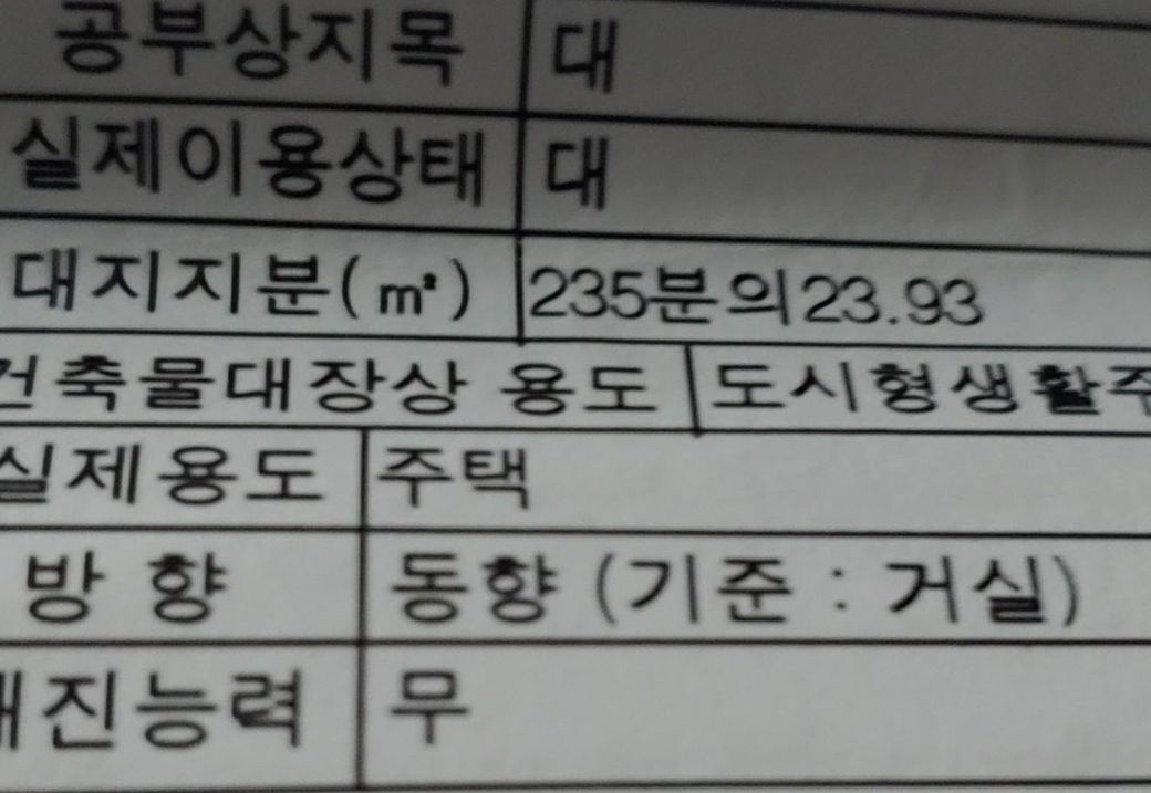 ==> 대지 지분 23.93은 평형대로 환산하는 경우 7.25평 정도 됩니다. 이러한 경우 빌라의 일반적인 대지지분에 해당됩니다.