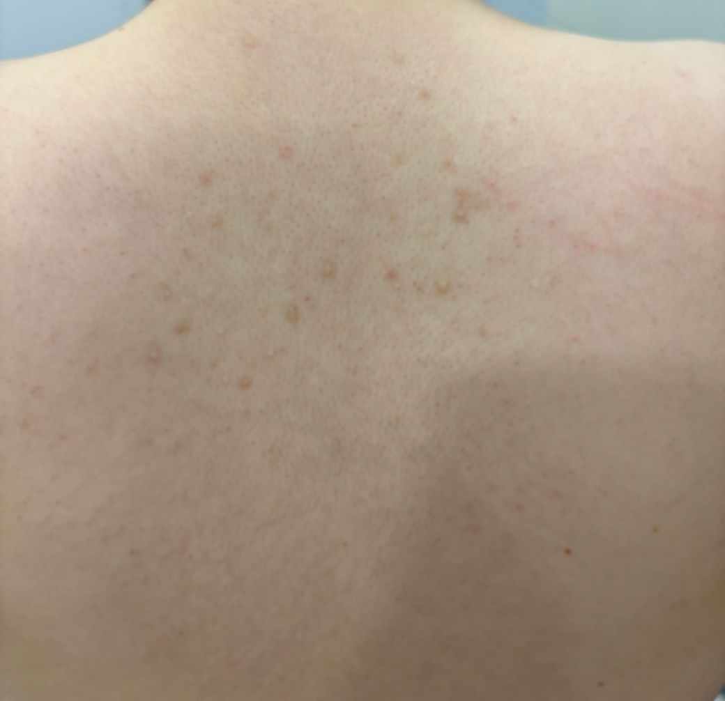 일년가량 등에 좁쌀같은게 낫는데 좀 나아지는가 싶더니 하얀색? 으로 뭐가나는데 단순 피부트러블일까요?