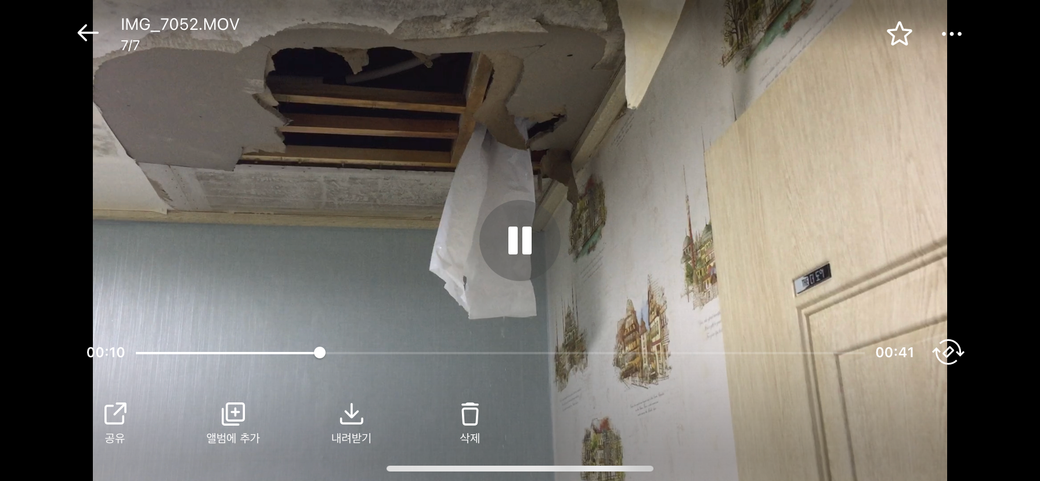 아래사진은 제작년 큰 역류로 천장이 무너진 동영상 캡쳐본입니다.