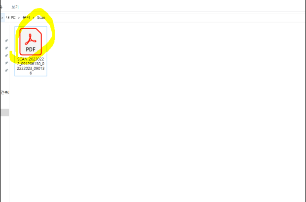 보여주신 화면을 보면 PDF로 스캔파일을 저장하신 것 같습니다. ^^
