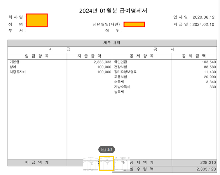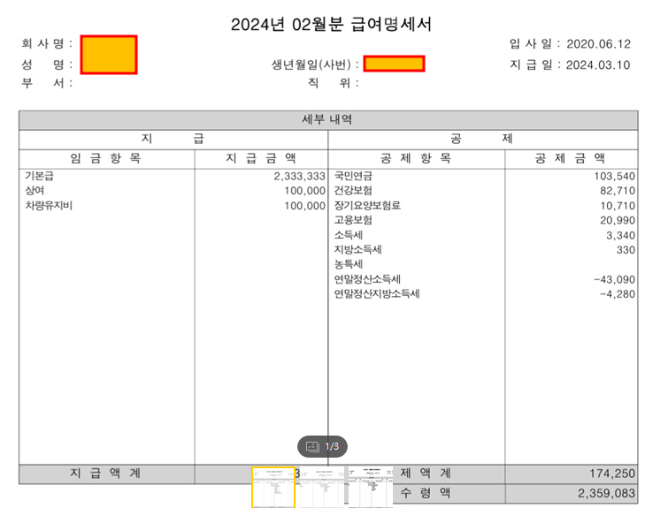 최근 3개월 급여입니다 퇴직금 중간정산을 하려는데