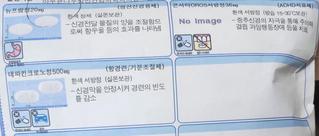 데파킨(기분조절제),콘서타(ADHD),뉴프람(항우울제)
