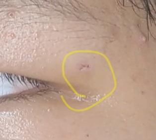 사진의 육안상으로는 상처가 아문상태로 보이나,