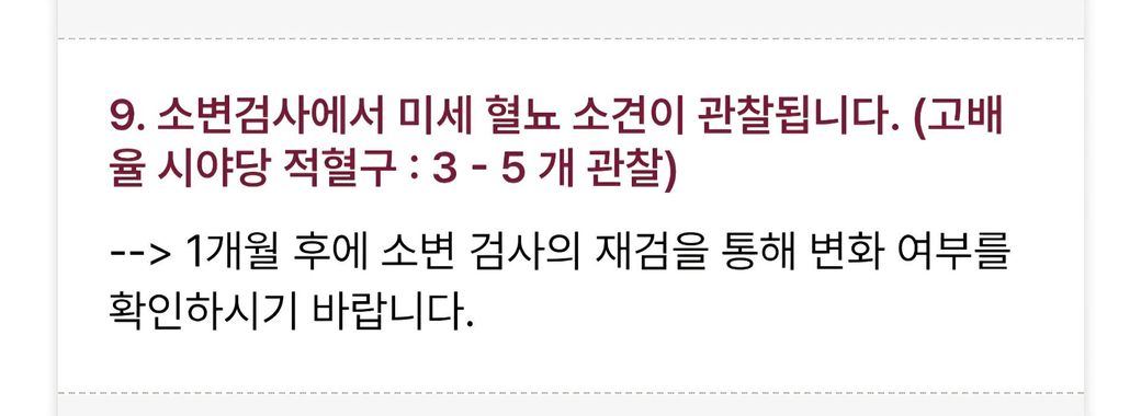 미세혈뇨 고배율 시야 3-5개 나왔어요