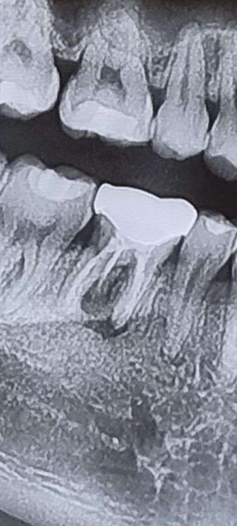 위 사진상으로도 잇몸뼈가 꽤 녹았습니다. 농양이 만성화되었다면 통증은 없더라도 잇몸뼈가 많이 녹은 상태일 겁니다.