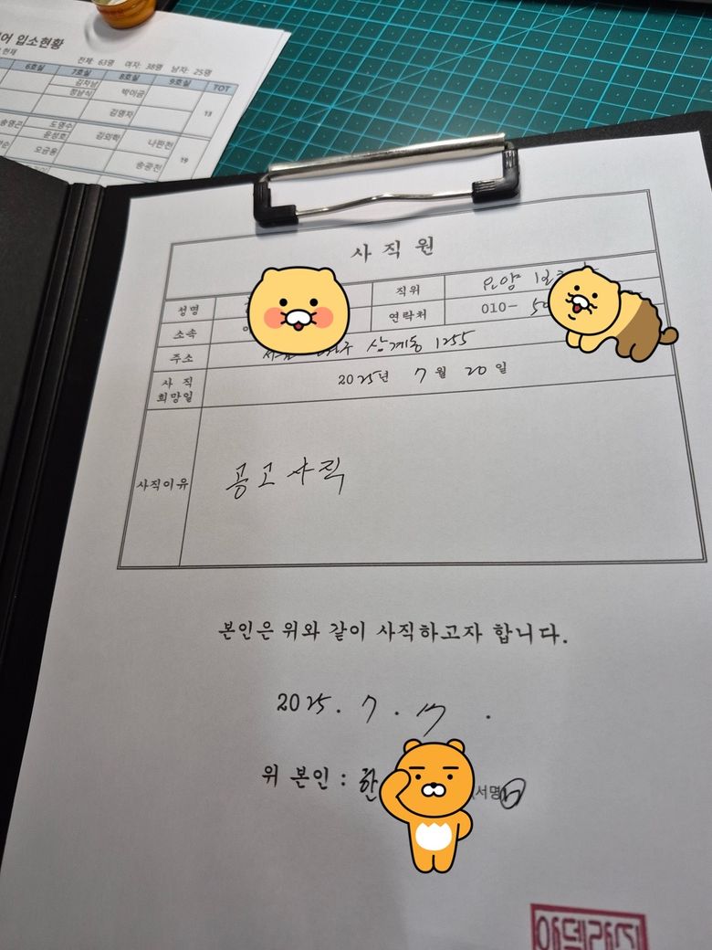 회사에서 대체자를 구한 후 7월 20일까지만 근무를 하라고 해서 사직서를 썼는데 저희 어머니가 권고사직을 써야하는데 철자를 공고사직으로 작성하였습니다.
