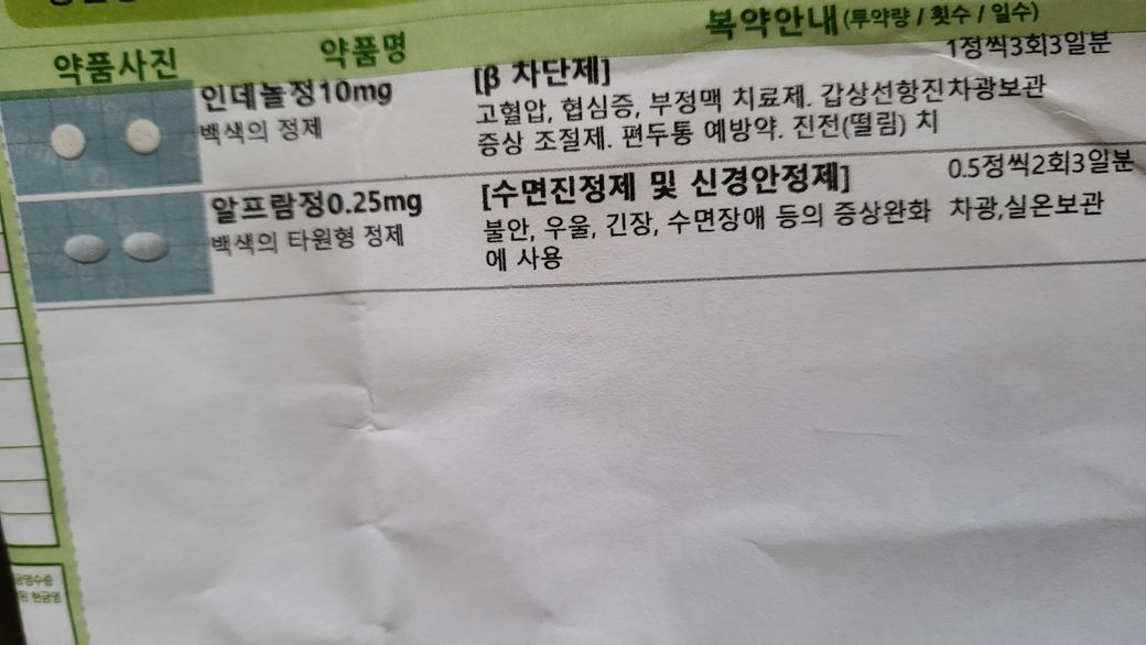 인데놀정 10mg<프로프라놀롤염산염 10mg>