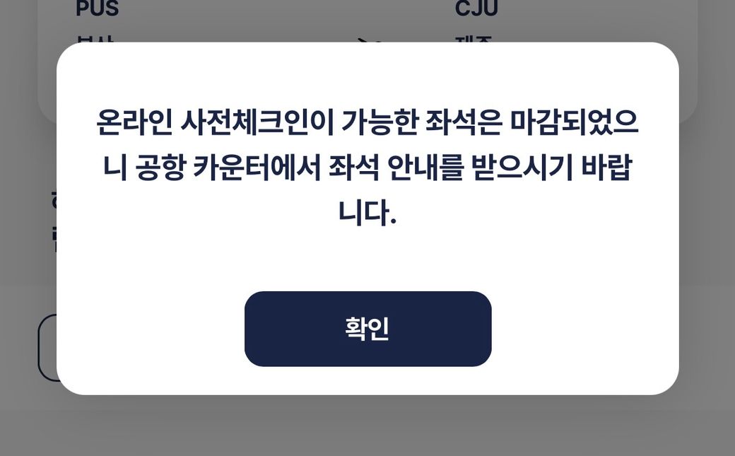 그런데 온라인 체크인에서 좌석지정이 마감되었다는 안내가 뜹니다.