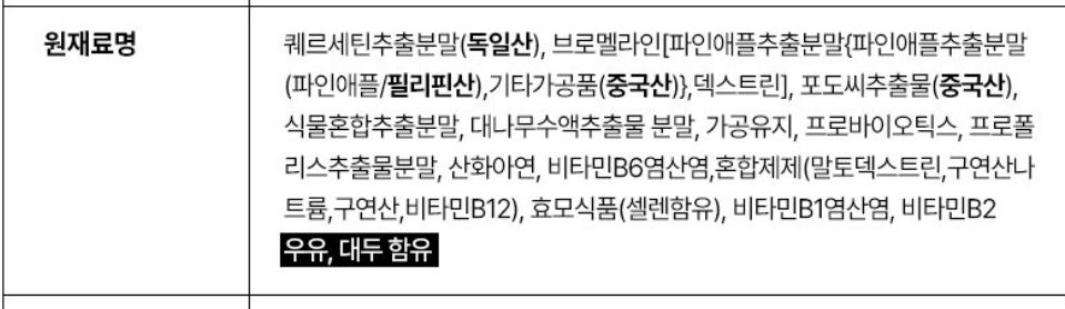알러지영양제(성분 사진참조_비타민 용량은 소량이라고 하나 정확한 함유량 알수없음)