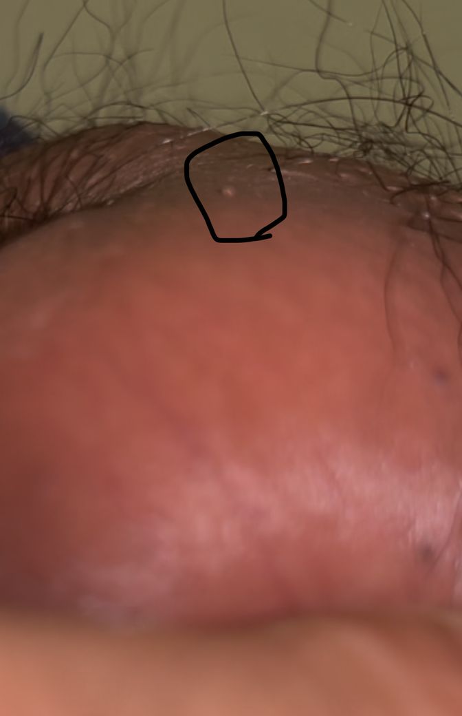 음낭 정 가운데에 사진과 같이 뾰루지? 같은데 생겼습니다.. 아주 크게 돌출된 건 아직 아니고 발견은 한달 전 쯤 발견했는게, 아직 이 상태 그대로이고, 퍼지거나 더 커지진 않앗습니다.