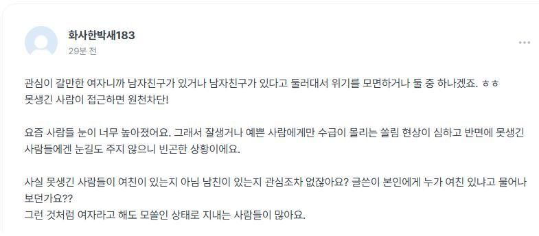 그것을 진리로 보는 것 같습니다. 외모지상주의 때문에 그런가..