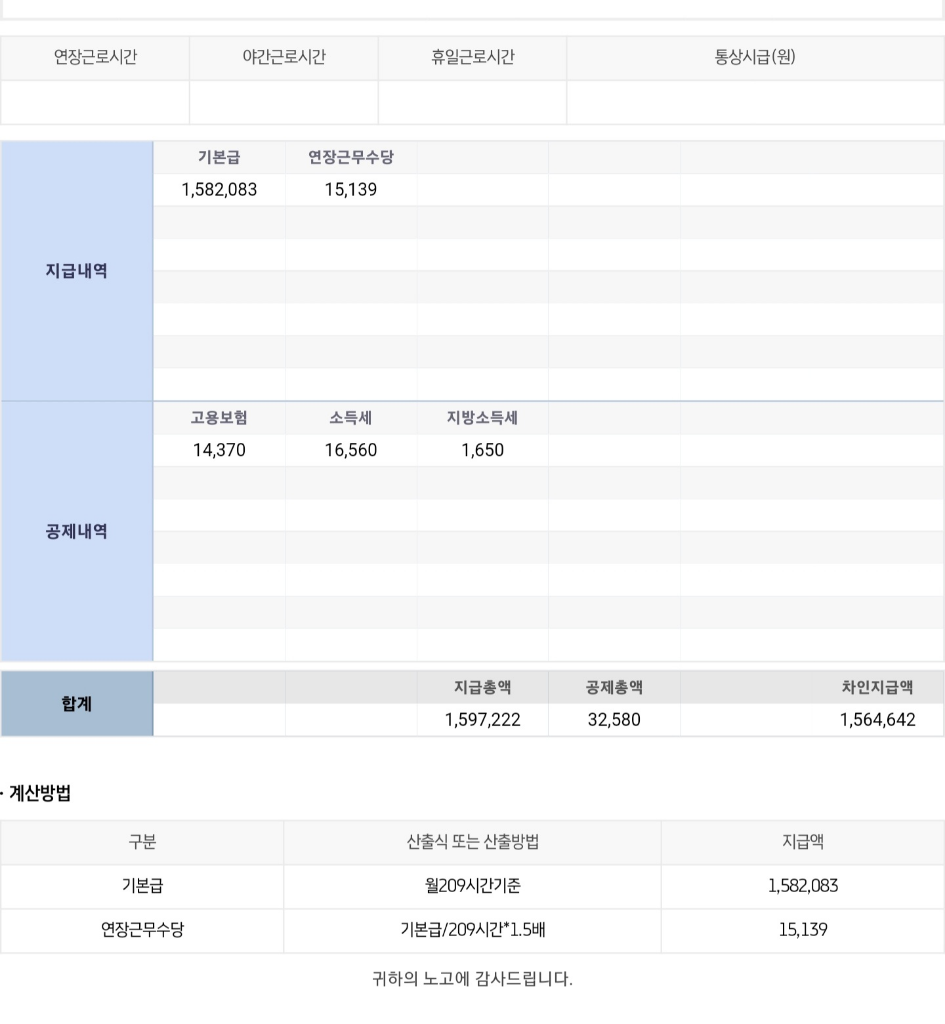 3. 따라서 적어주신 임금명세서를 보면 회사에서 잘못 계산하지는 않은 것으로 보입니다.