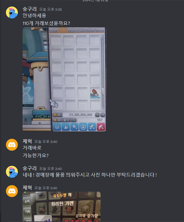 메이플 스토리에서 메소구입을위해 디스코드 메이플스토리 플라자라는 채널에서 메소를 구매를 원한다고 올렸습니다.