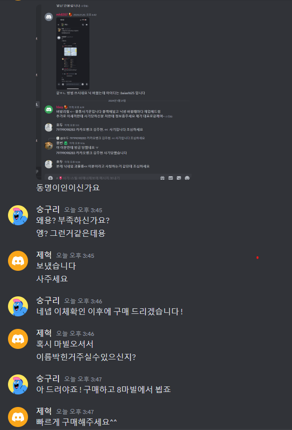 계좌번호와 위 디스코드 계정이나 관련 주소 등 최대한 자료를 수집하시어 고소를 진행하셔야 하고,