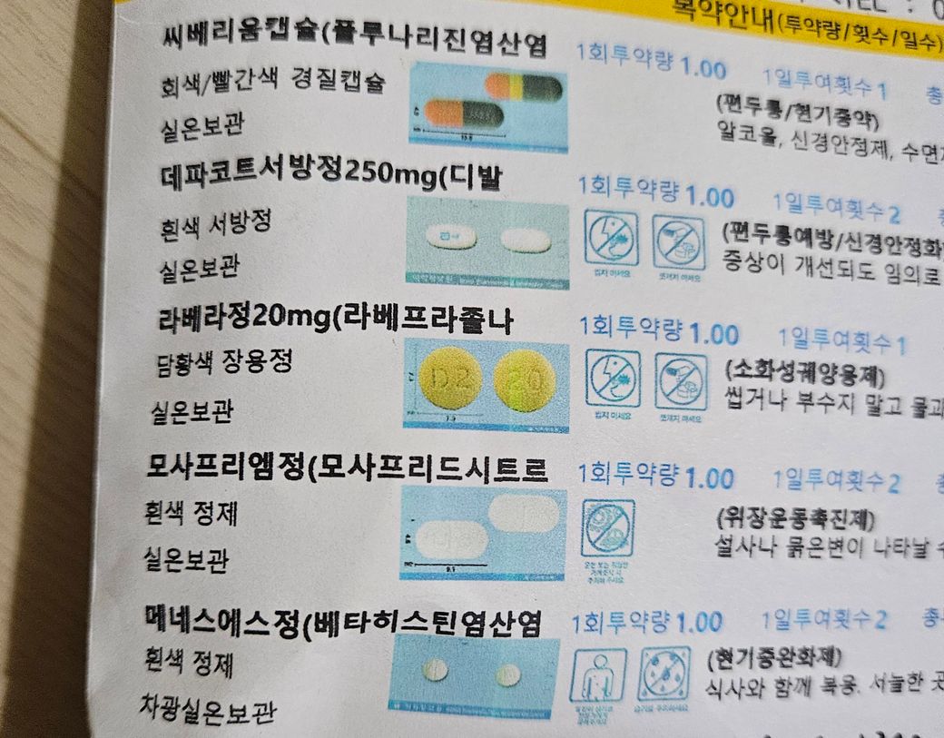 아까 저녁먹고 편두통증상이 있어 상비약으로 있던 아래 처방약들(편두통약)먹었는데요~~