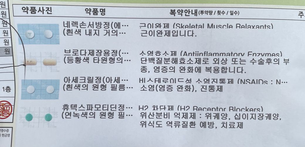 위쪽 처방전은 근육통에 의해서 처방은 받은 것으로 보이고,