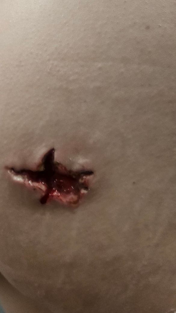작은 상처도 몇바늘은 꼬매는판국에.. 이렇게 보기 흉하게