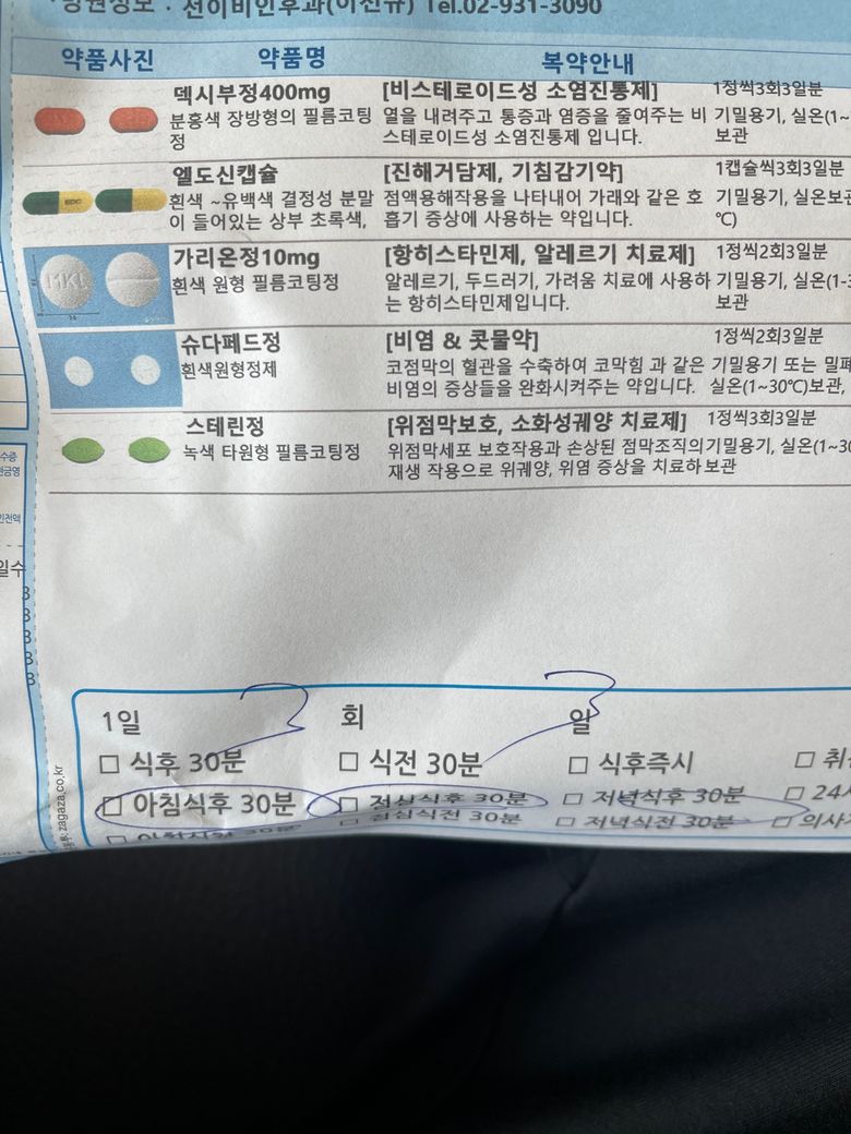 오늘 감기약 처방 받았는데, 스마일 라식 후 다음날 이 감기약 복용해도 되나요?