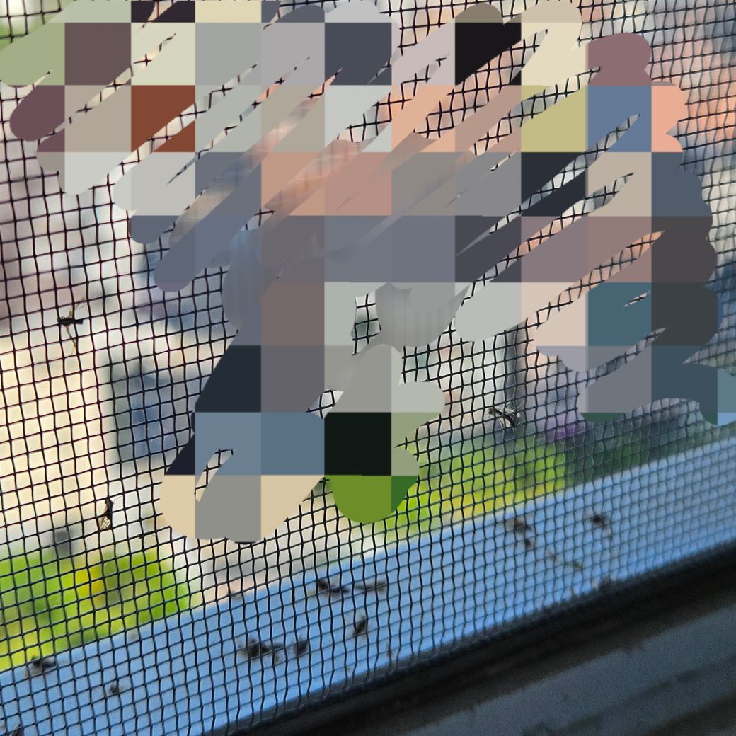 안녕하세요. 박창민 수의사입니다. 방충망에 가려서 잘 안 보이지만, 러브버그인 거 같습니다. 러브버그는 미국 파리의 외래종이며 인체에 무해합니다. 감사합니다.
