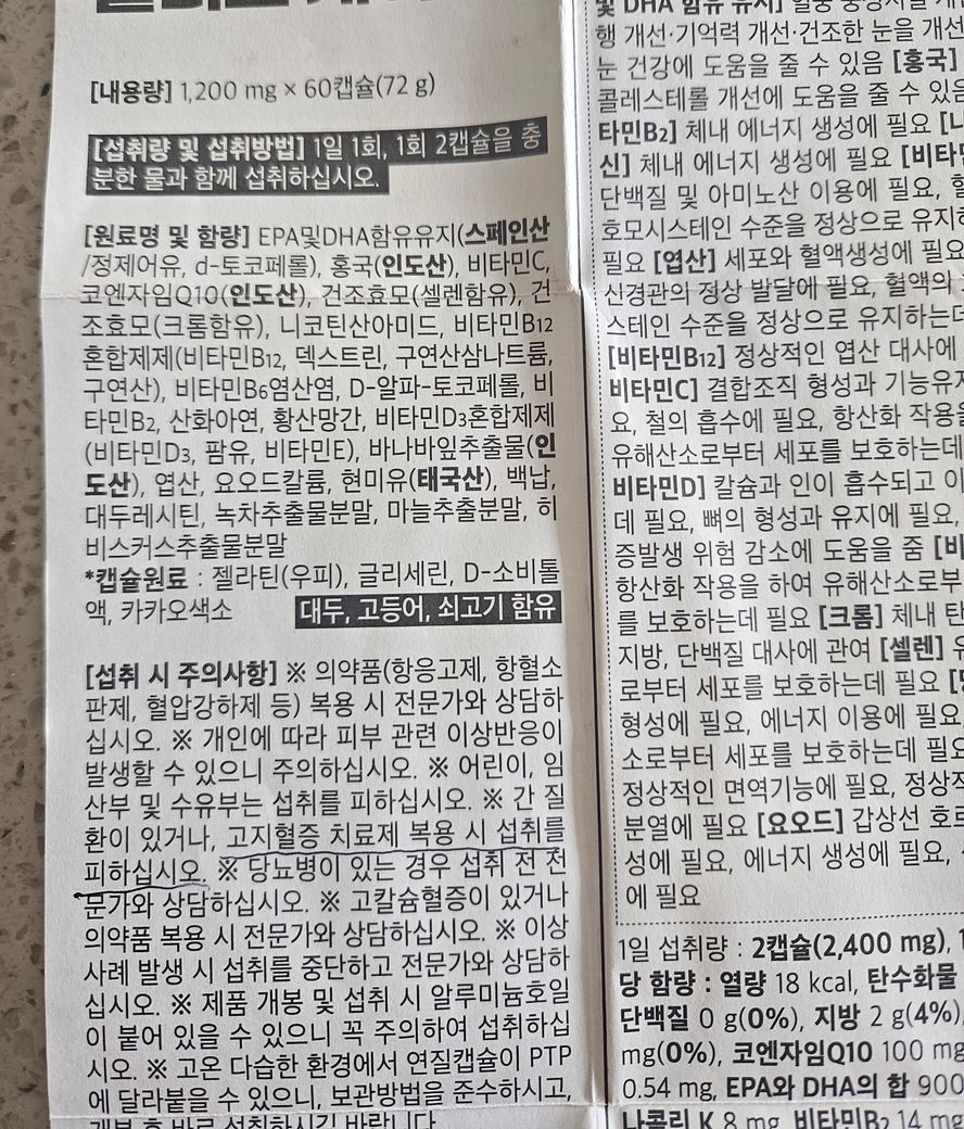 영양제성분은 비타민 b c 코앤자임큐텐 등입니다