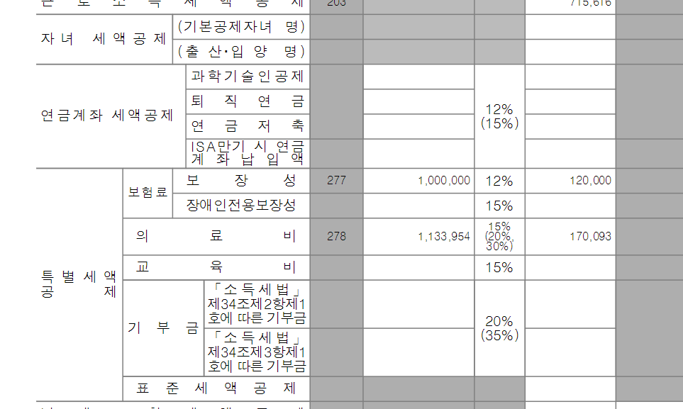 1. 특별세액 공제에 교육비, 기부금이 하나도 안떠있는데 그럼 누락시킨걸까요? 기입했는데 해당이 안된걸까요?