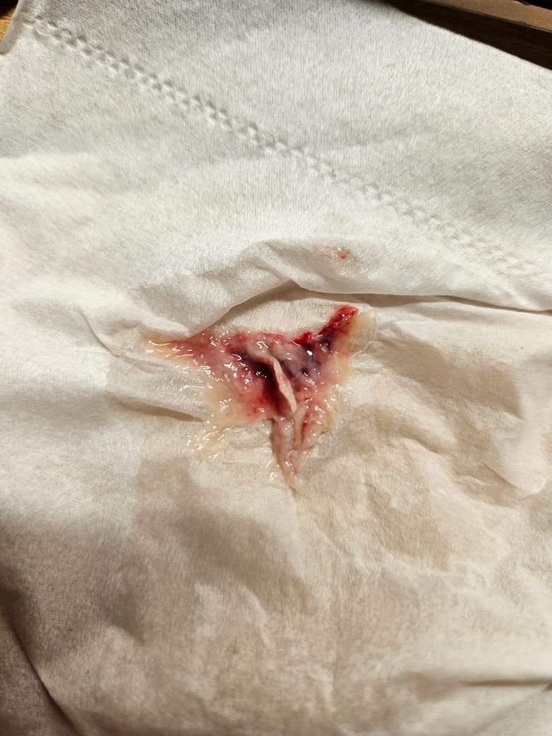 그러다 오늘 가래를 뱉는데 가래에 피가 섞여있어 의아해서 코가래를 뱉으니 피와 함께 정체모를 살덩어리가 나왔습니다.