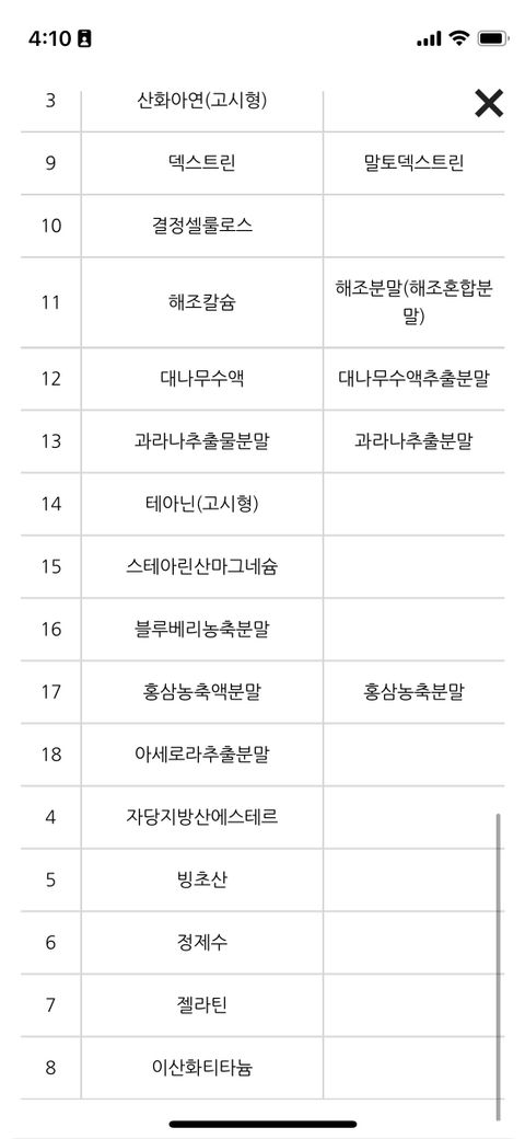 별다른 문제될 것이 없는 식품 성분들입니다