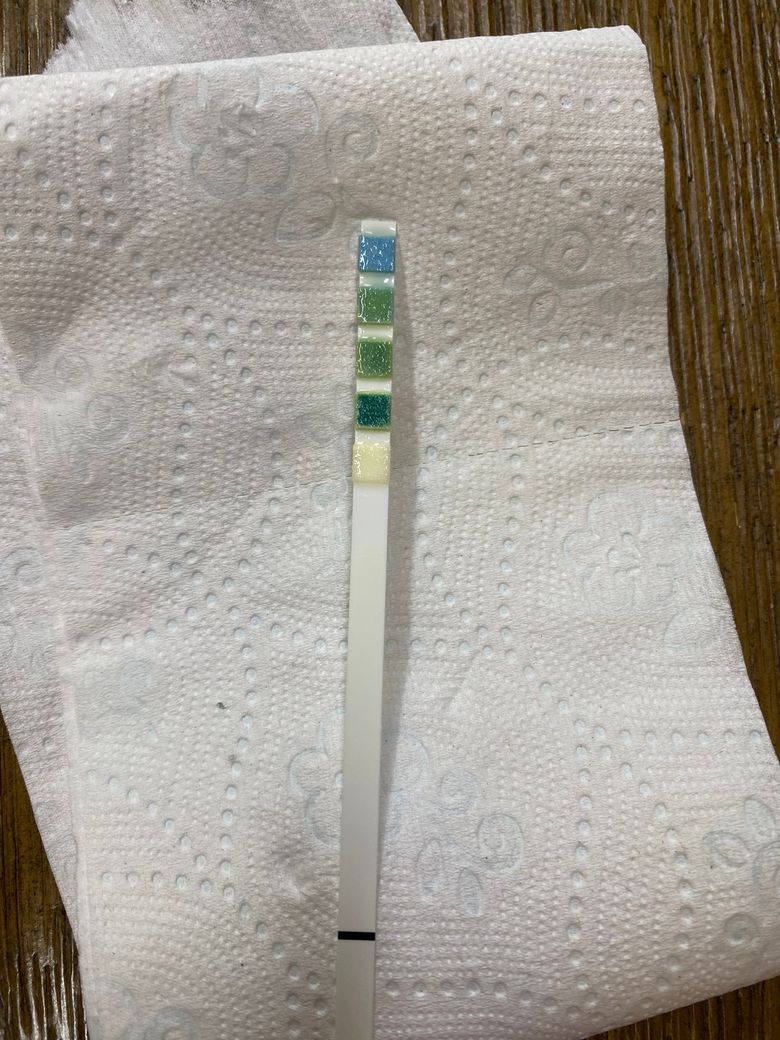 홈유린스틱을 구매해서 아침 첫 소변으로 검사를 해봤는데 아래와 같이 검사 결과가 나왔고,