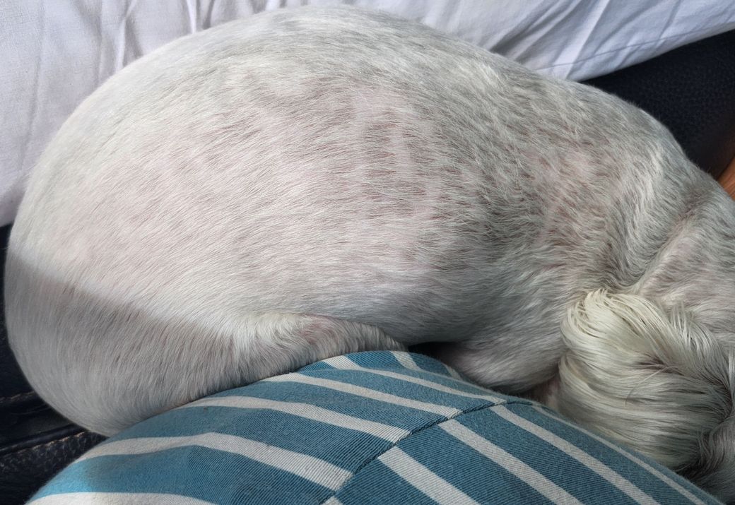 말티즈에서 공통적으로 발생하는 노화 과정입니다. 자외선등의 외부 자극에 대한 반응으로 색소가 침착되는것으로 질환 상태로 여기지 않습니다. 그저 삶의 흔적일 뿐이니 크게 문제되지 않는 것들입니다.