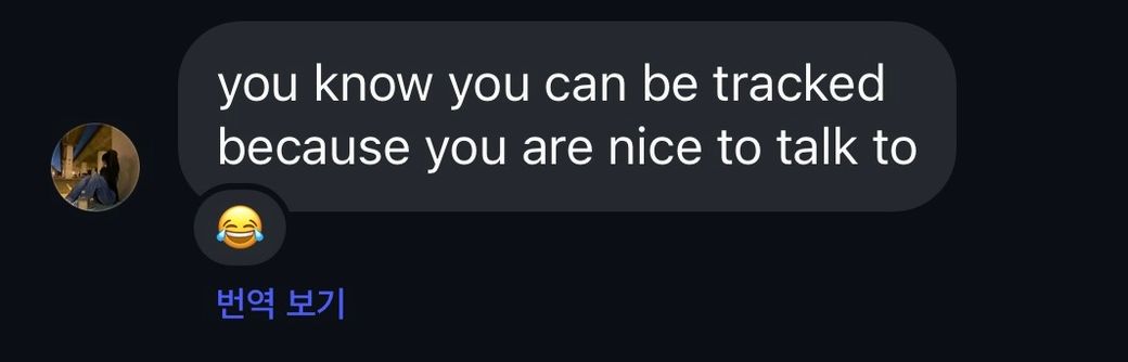 당신은 이야기 하기에 좋은 상대 이기에 추적 가능 하다는 말은 많은 사람들이 당신을 따라 다닐 것이라는 의미로 쓴 것 같습니다. 상당히 좋은 칭찬을 한것으로 보입니다.