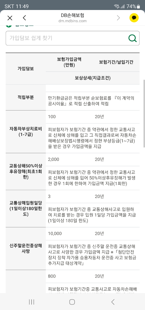 현재는 모든 보험사 30만원까지만 설계 가능한데 DB의 경우 자동차부상치료비 II를 넣으시는게 유리합니다