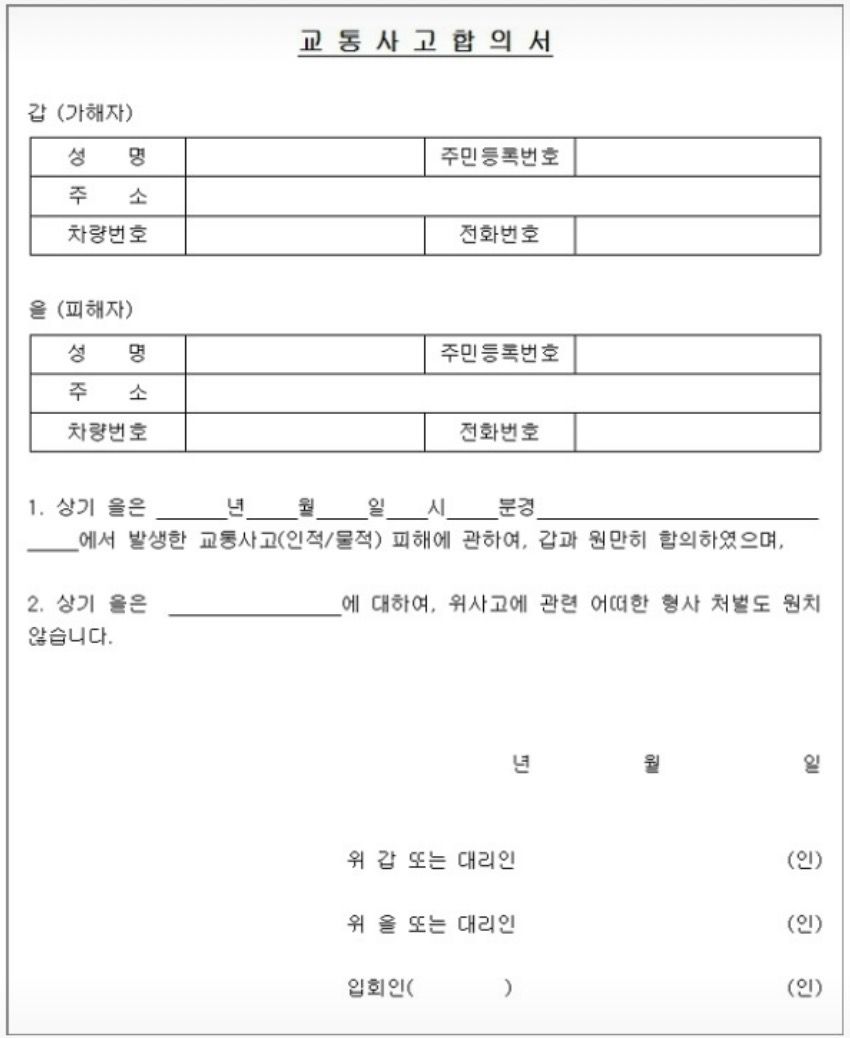 책임보험 가해자입니다. 합의서 작성양식이 궁금해요