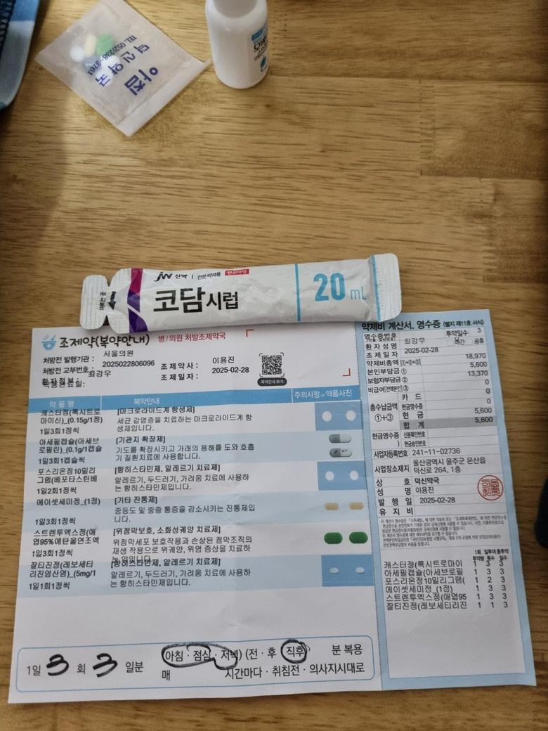 병원에서 처방받은약을 먹고있는데 지금도 목 간질하고 기침 계속하고 코계속 막히는데 혹시 추가로 코담시럽 먹어도될까요?몸무게85키로 입니다 병원이 다 닫아서 도와주세요 ㅠㅠ
