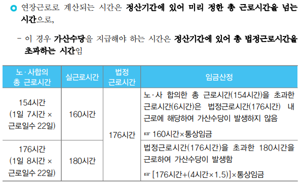1. 사전 약정한 총 근로시간을 초과하였어도 법정 총 근로시간을 초과했을 때만 연장근로 수당 지급아닌가요?