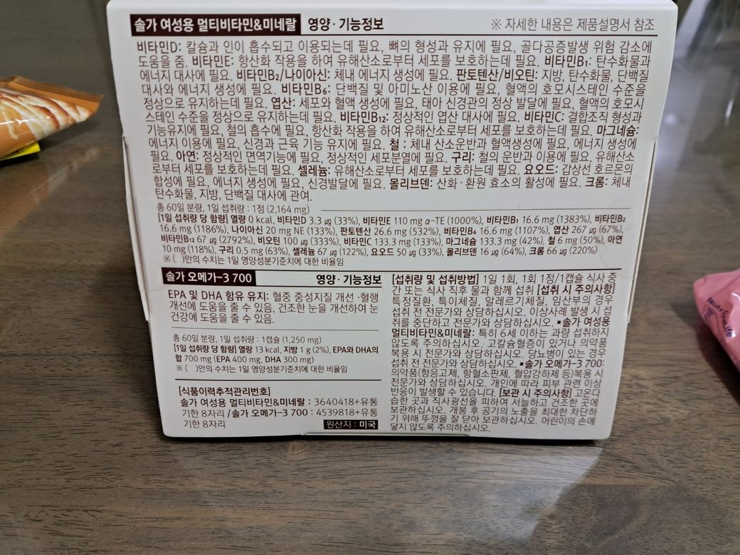 1. 솔가 여성용 멀티비타민 & 미네랄