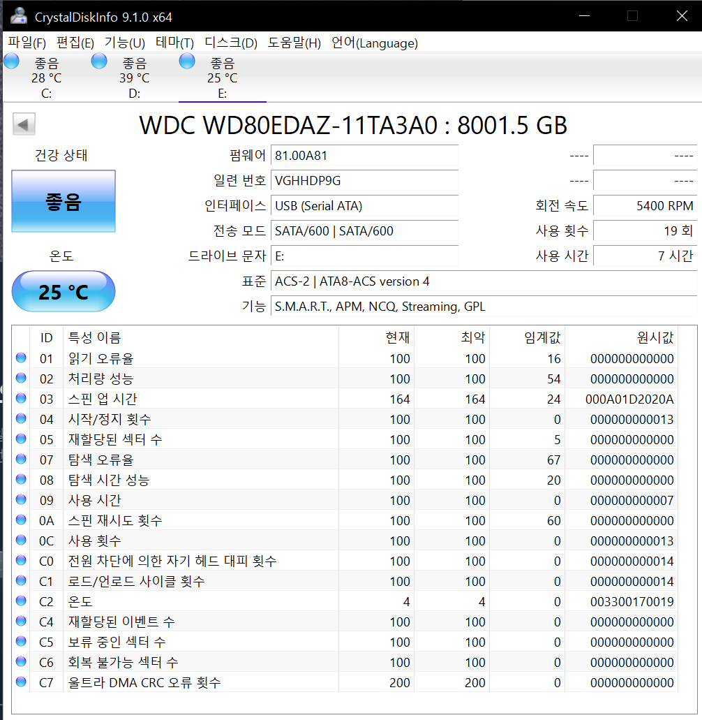 10시간도 사용하지 않았고 usb3.0케이블, 아답터 구성품으로 있습니다. 중고거래에서 만나서 판다고 했을때 얼마정도를 받으면 될까여? 아래는 벤치마크 프로그램으로 나오는 정보입니다