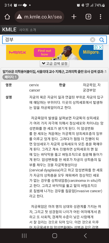 의학계통에서는 의학계통에서 많이 쓰는 결과를 노출하니 자궁경부로 나오는 경우가 많습니다.
