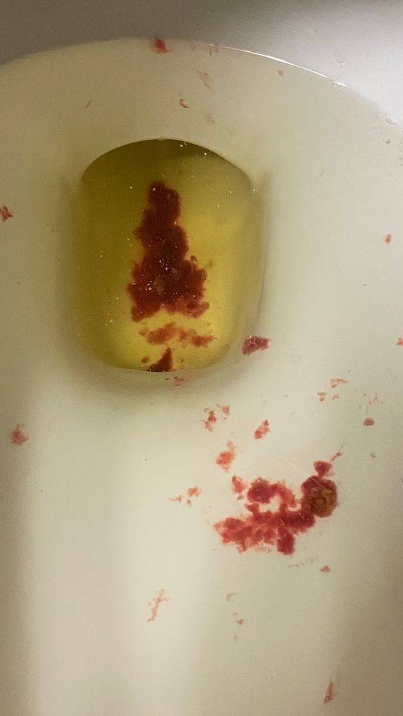 간신히변은 봤는데 계속 설사합니다 3번정도 한 후에 변을 보니 사진처럼 피가 있는듯 합니다