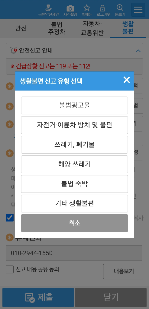 안전신문고 앱으로 생활불편 기타생활불편으로 요청해보세요. 담당과로 검토 갈껍니다