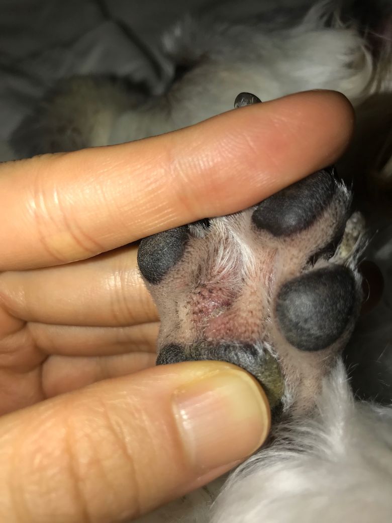 ㅠㅠ 습진 생기지 말라고 발에 털을 항상 밀어주는데, 좀 불편한지 핥아서 보니 발바닥 안에 혹이 있어요. 약간 불그스름하고, 꾹 누르면 아파하거나 하진 않는데 종양인가요?