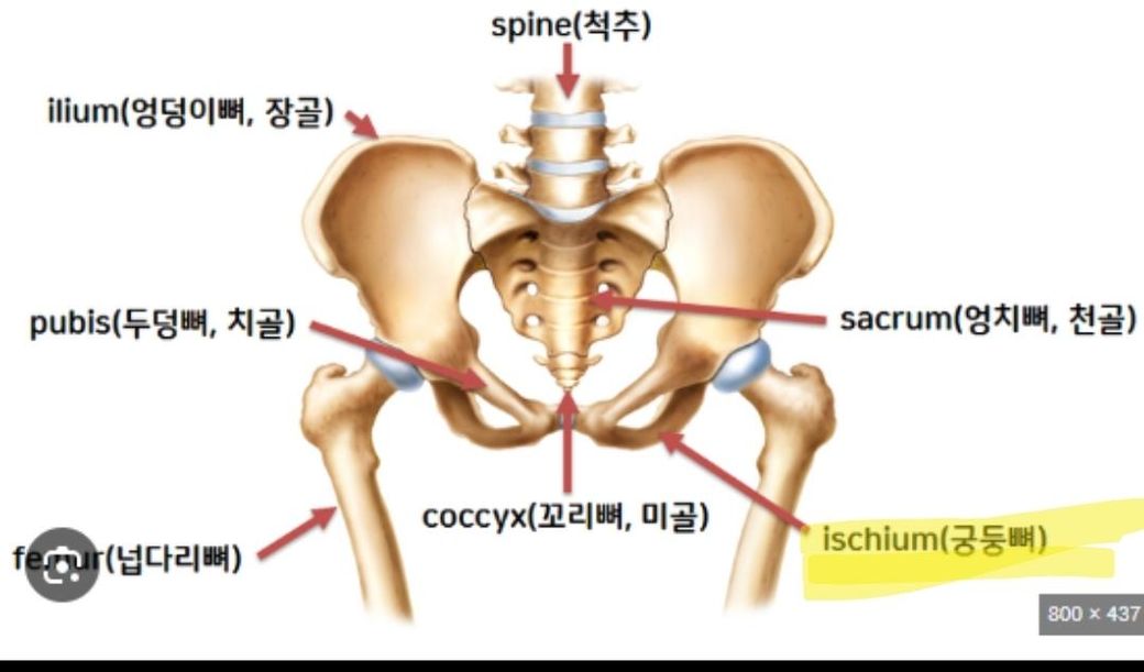 네 골반뼈중에 좌골뼈는 엉덩이 살이 말랑거리거나 적은 분들은 충분히 만져집니다 두터운 지방이 있으면 만져지기 힘들수도 있습니다