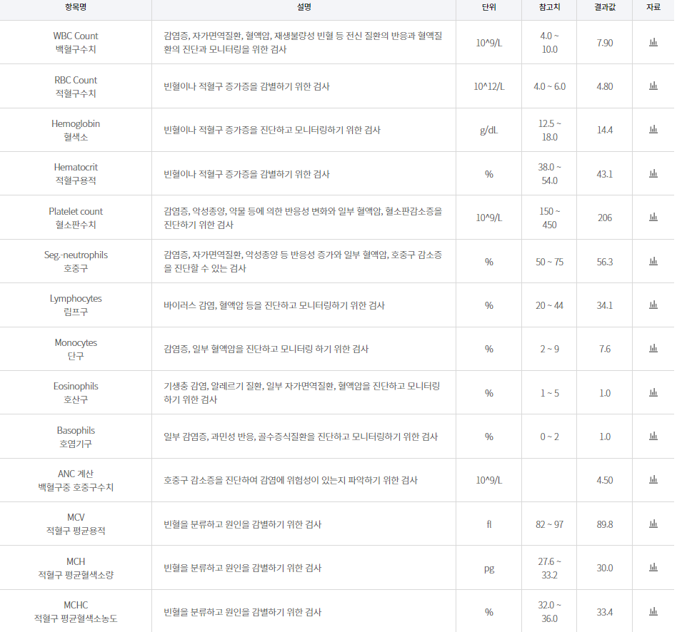 4. 올해 5월 말에 관절 수술할 일이 있어서 입원 전 검사를 몇 번 받았었는데요. 검사 한지 5개월 정도가 지났는데 첨부한 검사 내역 사진에 문제가 있을 만한 것이 있는지 확인 좀 해주세요. 검사 상 이상이 없다면 혹시 5개월만에 당뇨병 같은게 생길 수도 있나요?