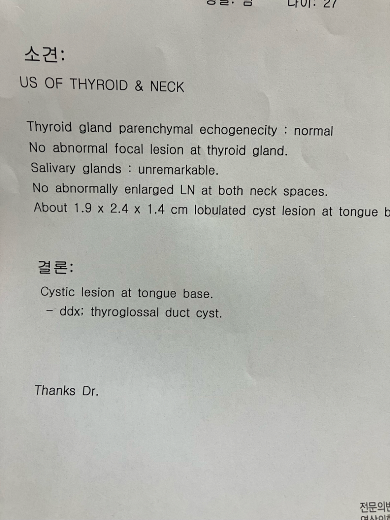 1. 설관낭종의 1% 정도에서는 갑상선암이 발생할 수 있습니다. 매우 드문 일이라는 의미입니다.