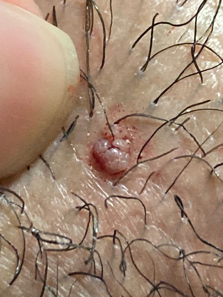 이런 경우 쥐젖(연성섬유종)일 가능성도 있지만, 발생 시기가 갑작스럽고 며칠 내 생겼다는 점, 그리고 짰을 때 상처가 난 점 등을 보면 쥐젖보다는 피지낭종, 피지선증식증, 모낭염 등 단순 피부질환일 가능성이 높아 보입니다. 곤지름(성기사마귀) 역시 다양한 형태가 가능하기 때문에 배제 하셔야 하구요. 다만 성 접촉 이력이 최근에 없었다면 가능성은 낮아 보입니다.