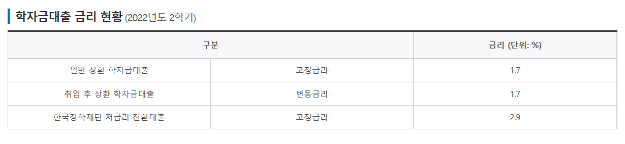 국가장학금 대출과 같은 경우 변동금리라고 하더라도