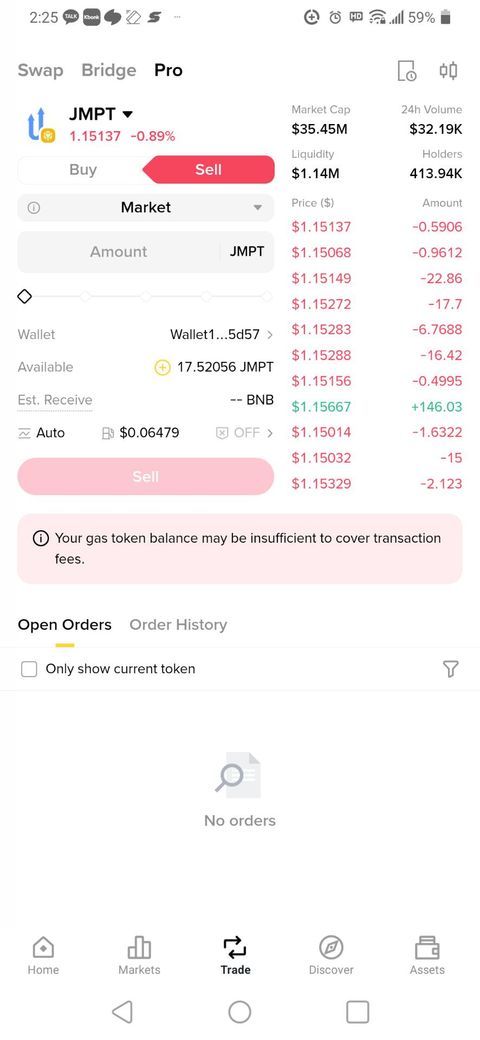 바이낸스 통해 jmpt를 팔려고 하는데 팔수가 없네요.